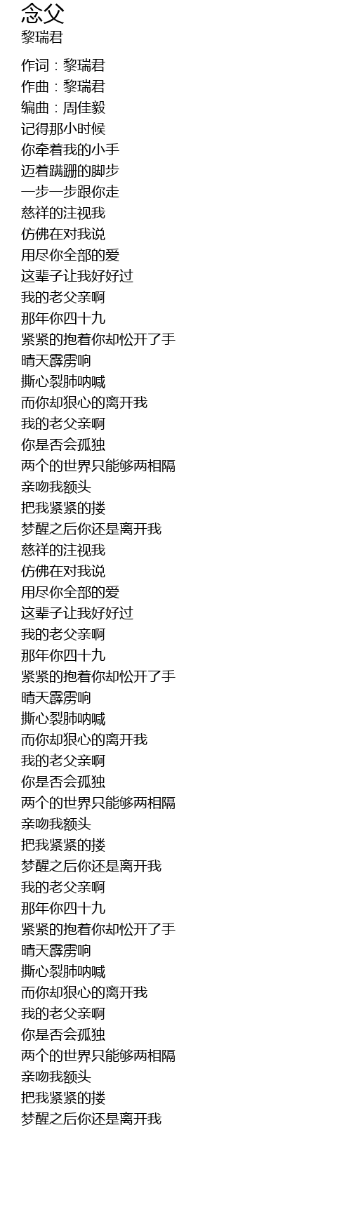 | [01:30.12] | wǒ de lǎo fù qīn a |