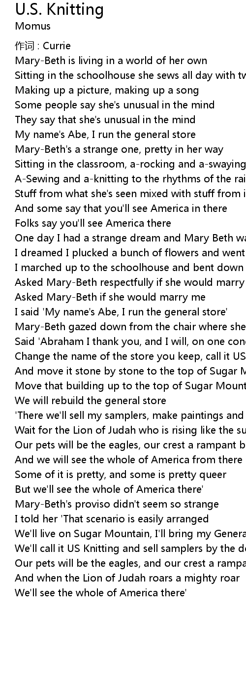 | Song | U.S. Knitting |
