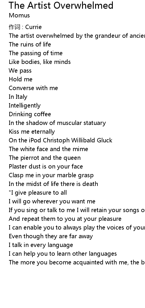 | Song | The Artist Overwhelmed |