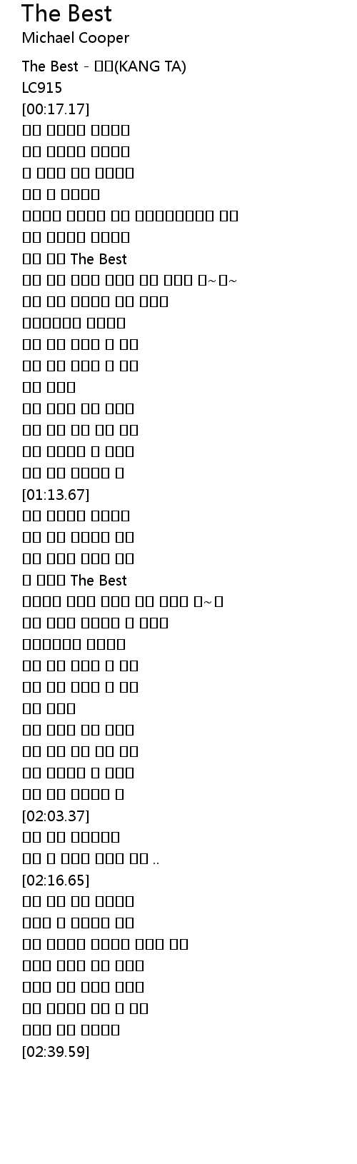 | [00:02.75] | The Best - 강타(KANG TA) |