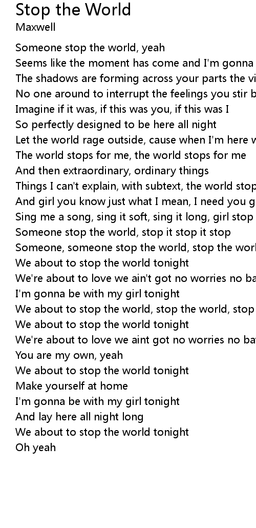 | Someone stop the world, yeah | |