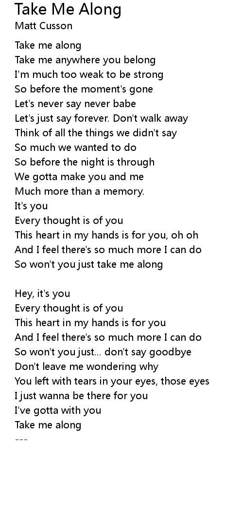 Take me along |