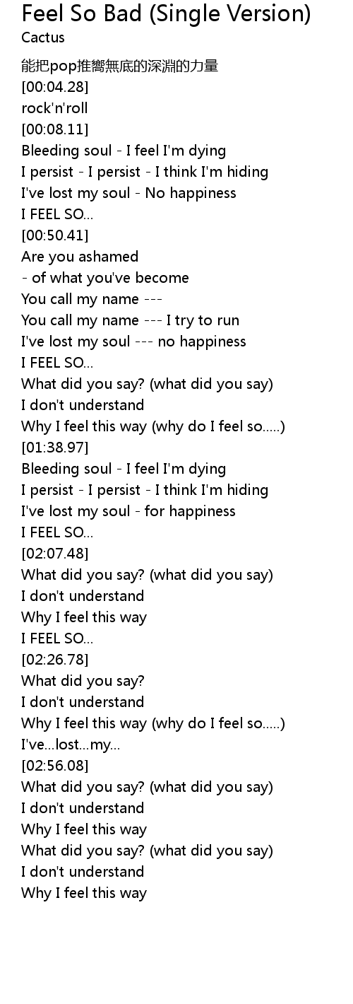 | [02:36.35] | Why I feel this way (why do I feel so.....) |
