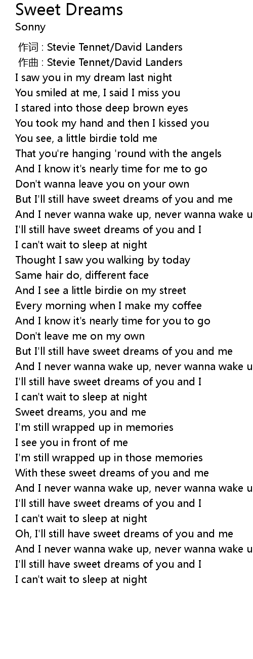 | [02:05.42] | But I' ll still have sweet dreams of you and me |