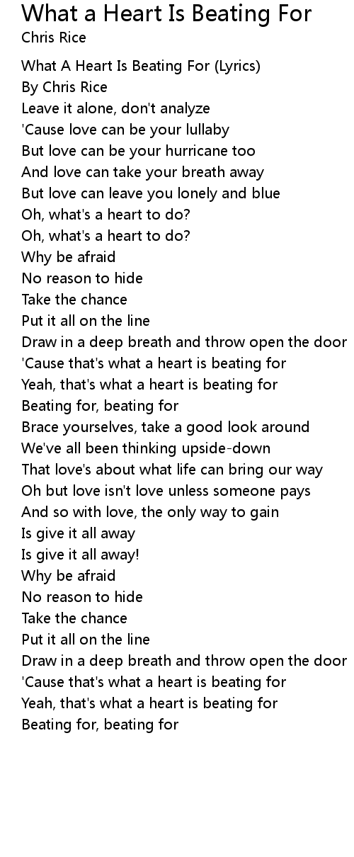 'Cause that's what a heart is beating for |