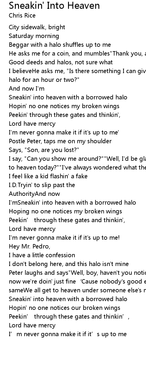 | I'mSneakin' into heaven with a borrowed halo | |