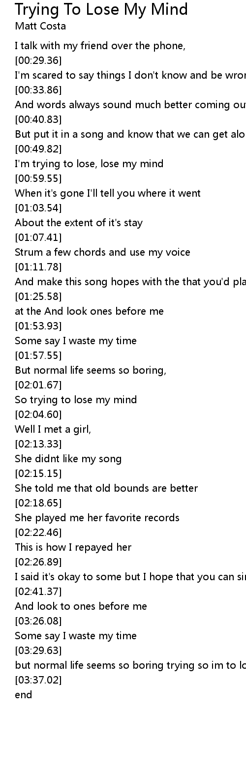 So trying to lose my mind |