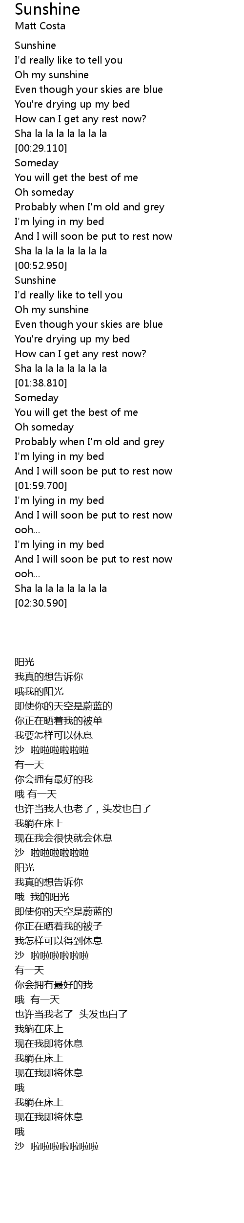 | [01:22.730] | Oh my sunshine |
