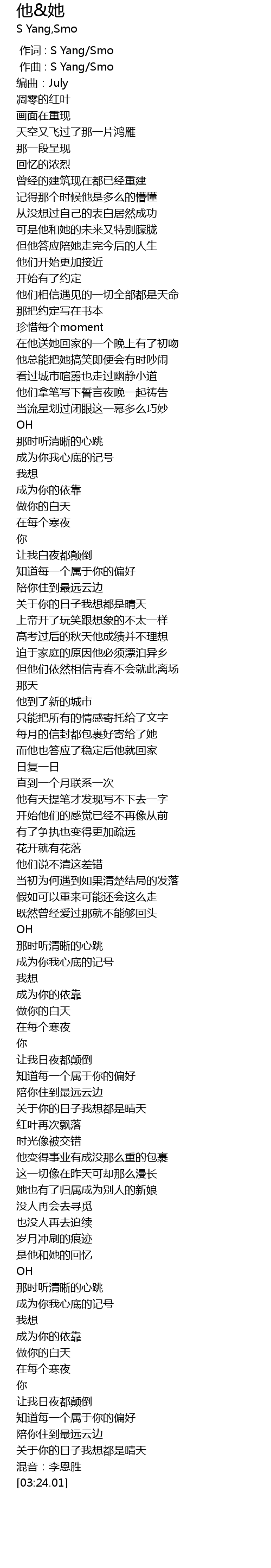 | [00:00.000] | 作词 : S Yang/Smo |