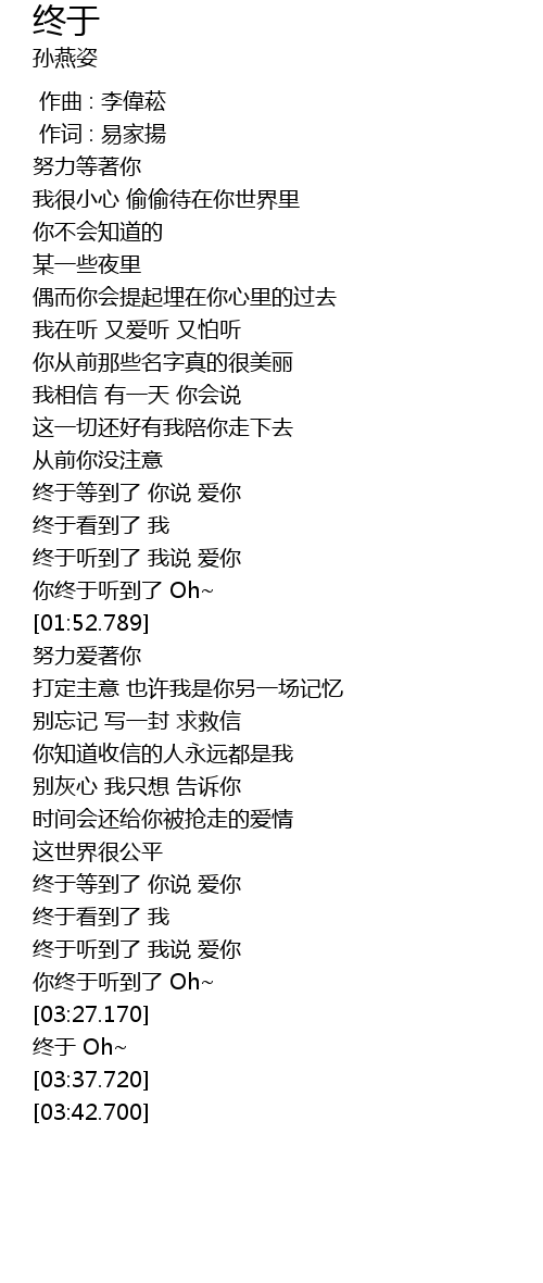 | [02:55.329] | 终于等到了 你说 爱你 |