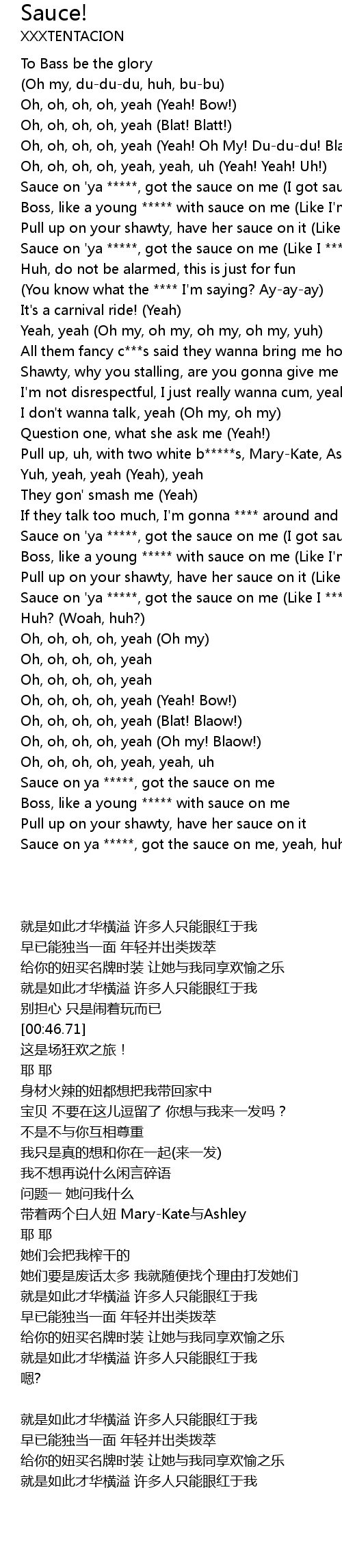 Sauce on ya *****, got the sauce on me, yeah, huh |