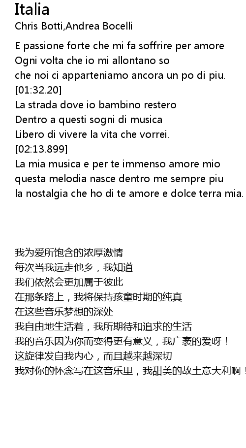 | [03:57.869] | la nostalgia che ho di te amore e dolce terra mia. |