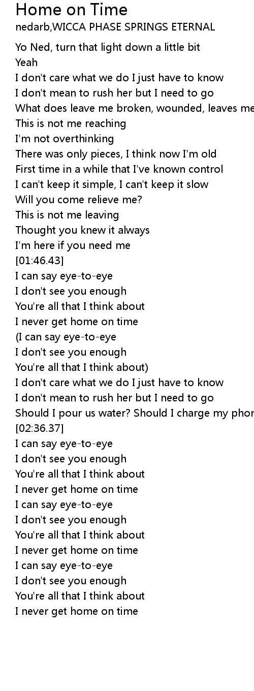 | [00:41.70] | I don't mean to rush her but I need to go |