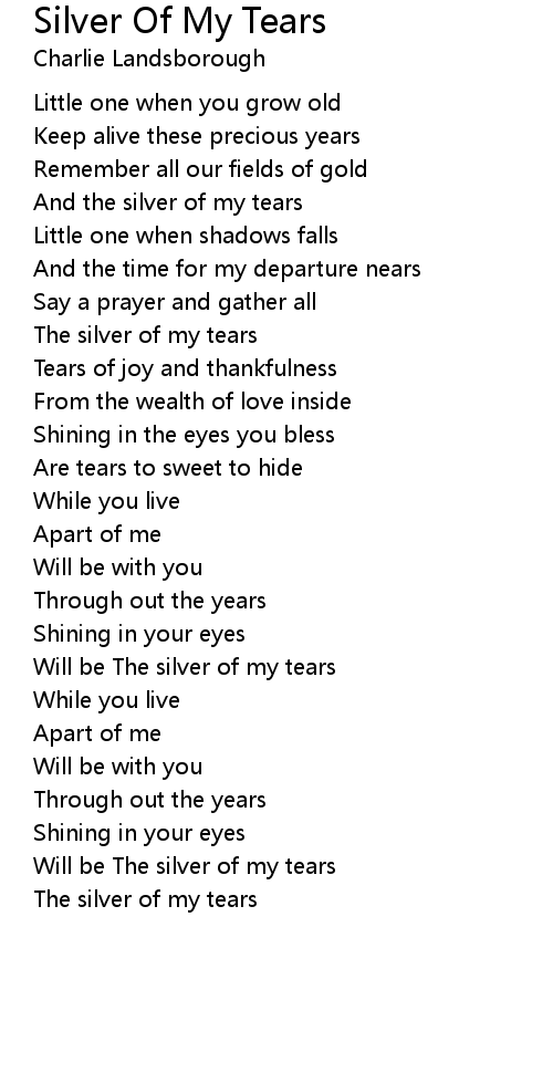 Will be The silver of my tears |