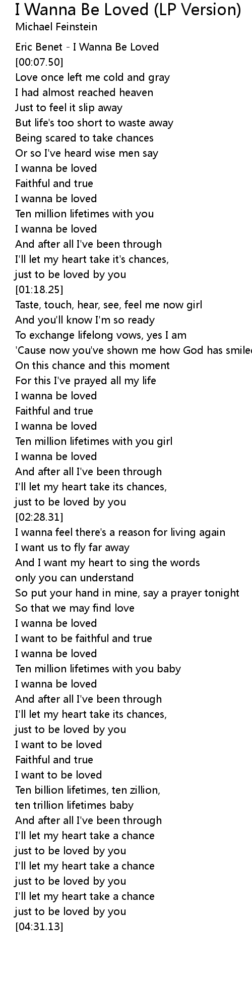I wanna be loved |
