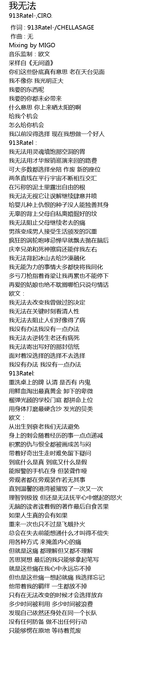 | [00:00.000] | 作词 : 913Ratel-/CHELLASAGE |
