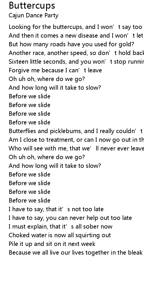 | [00:14.750] | Looking for the buttercups, and I won' t say too much |
