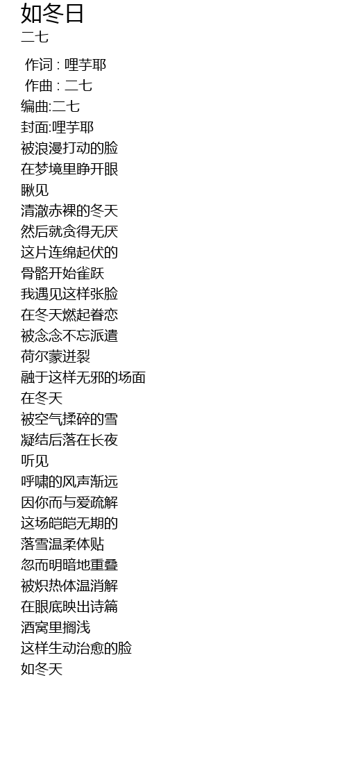 | [00:27.729] | qīng chè chì luǒ de dōng tiān |