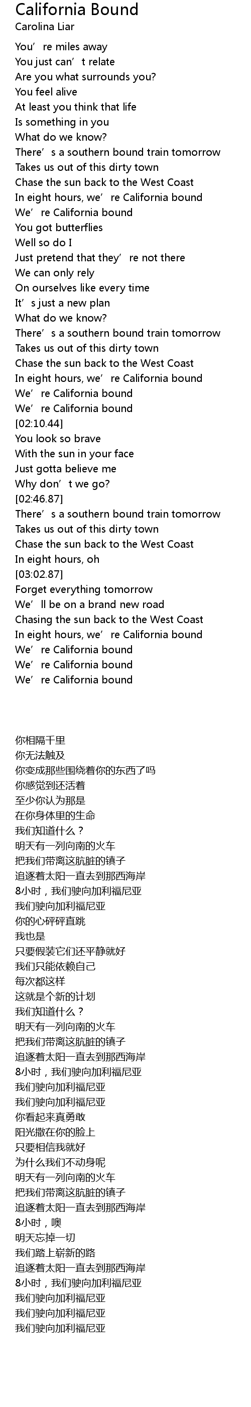 | [02:56.46] | Chase the sun back to the West Coast |