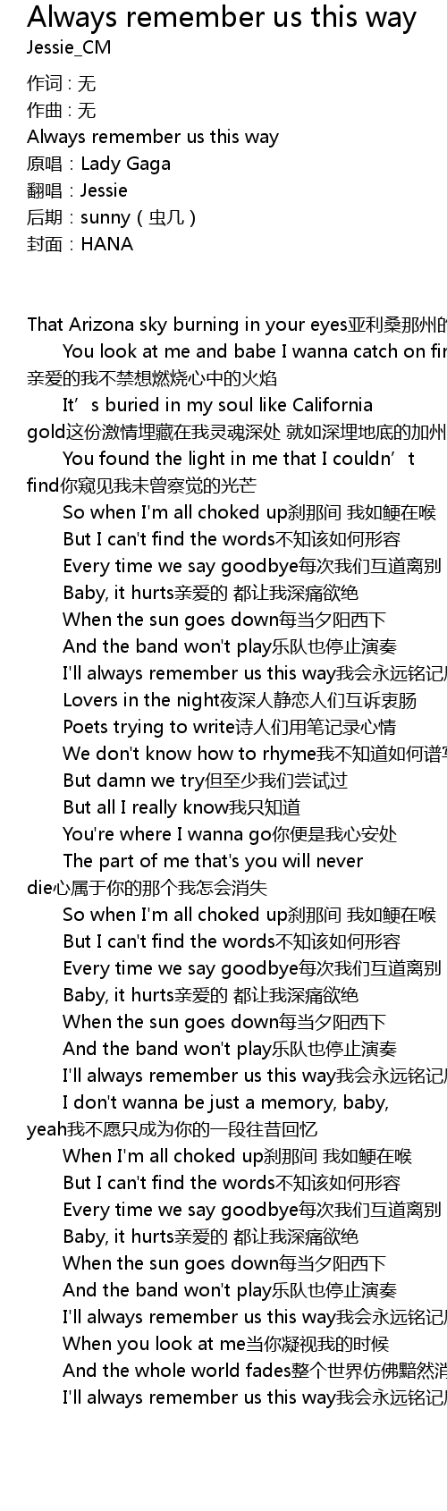 | Album | Always remember us this way【一个明星的诞生】cover |