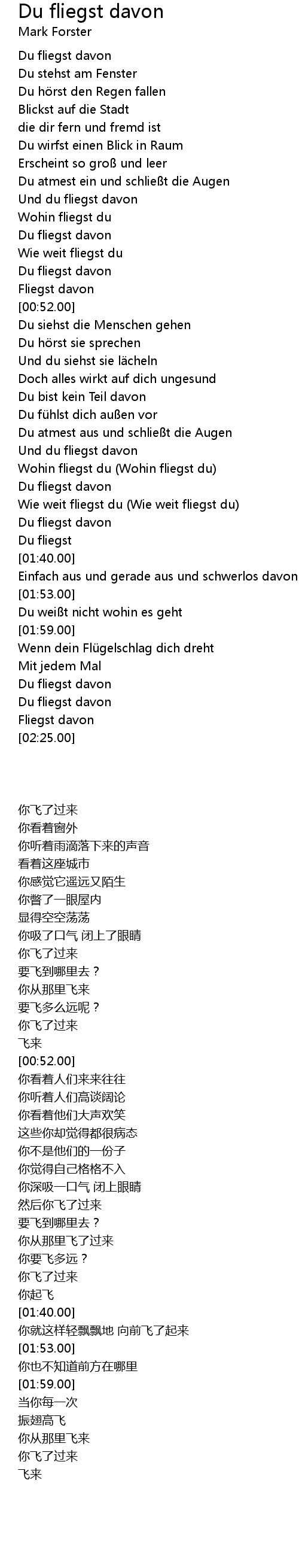 | [00:38.00] | Wohin fliegst du |