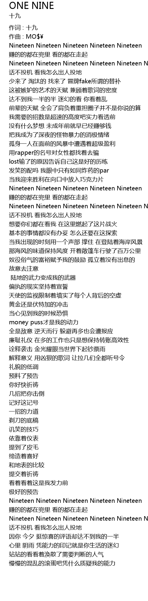 | 作词 : 十九 | |