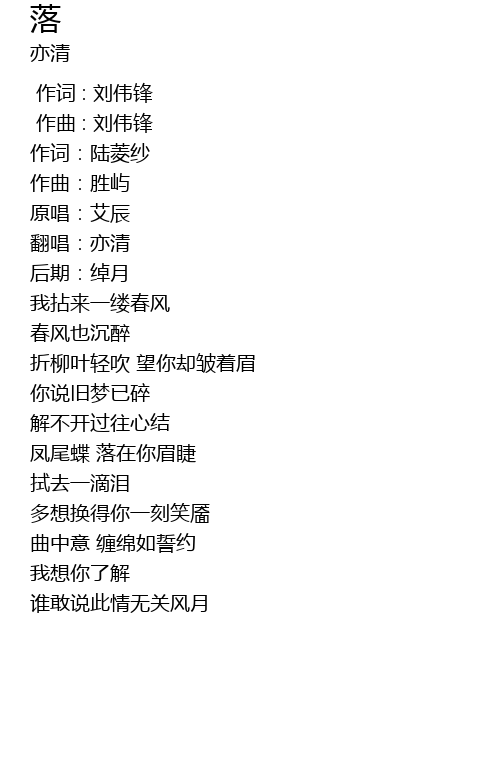 | [00:17.807] | 拭去一滴泪 |