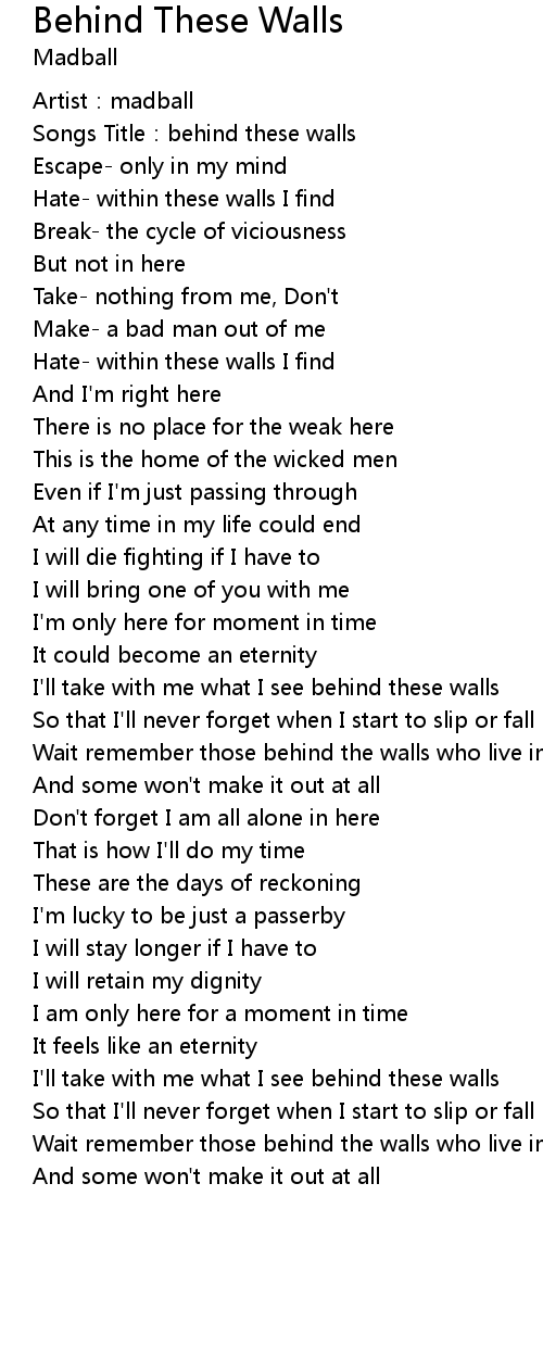 | [01:45.50] | Wait remember those behind the walls who live in regret |
