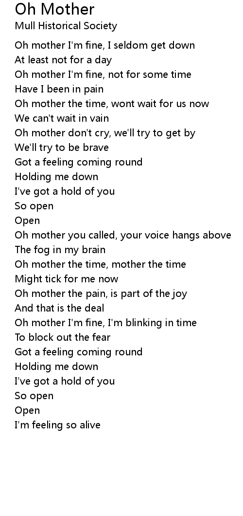 Oh mother I'm fine, not for some time |