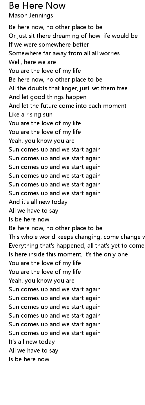 Is be here now |