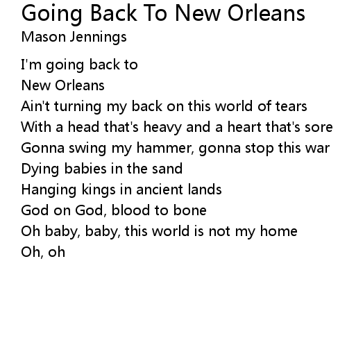 | Song | Going Back To New Orleans |