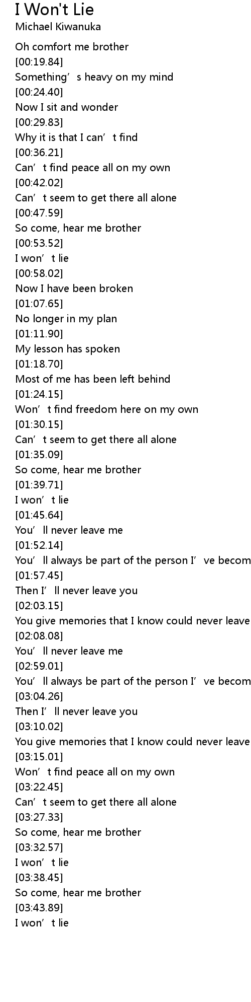 | [01:43.15] | I won' t lie |
