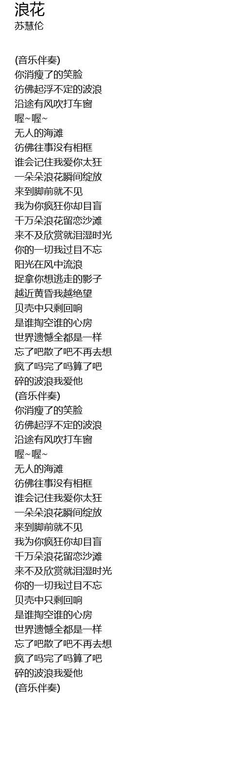 | [03:21.0] | 千万朵浪花留恋沙滩 |