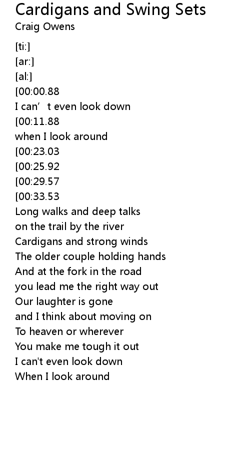 | Song | Cardigans and Swing Sets |