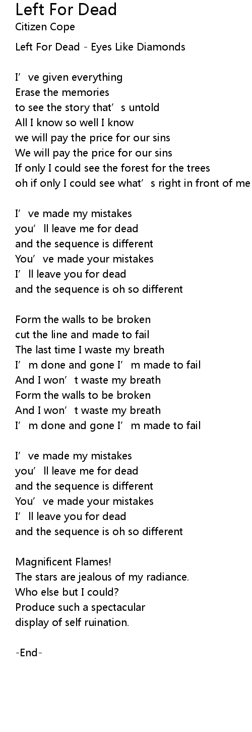 | Left For Dead Eyes Like Diamonds | |