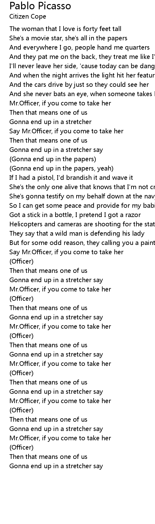 Say Mr.Officer, if you come to take her |