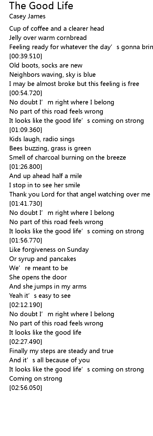 | [02:22.440] | It looks like the good life |