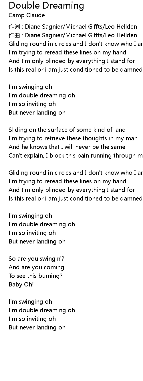 | I'm double dreaming oh | |