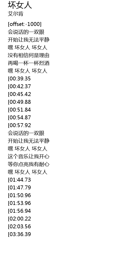 | [00:32.46] | 嘿 坏女人 坏女人 |