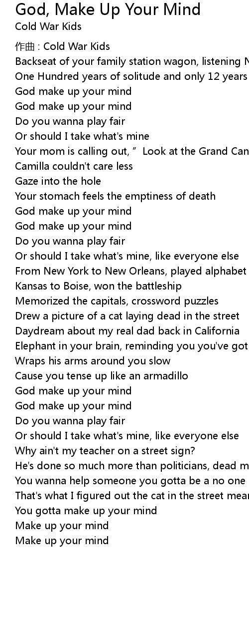 | Song | God, Make Up Your Mind |
