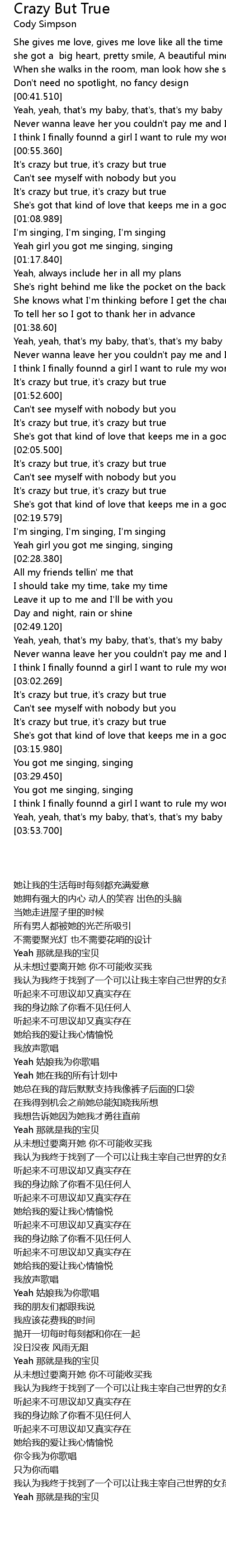 | [01:51.980] | It' s crazy but true, it' s crazy but true |