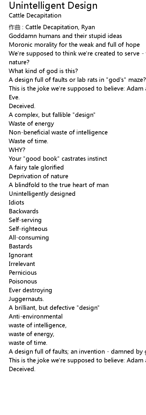 | Song | Unintelligent Design |