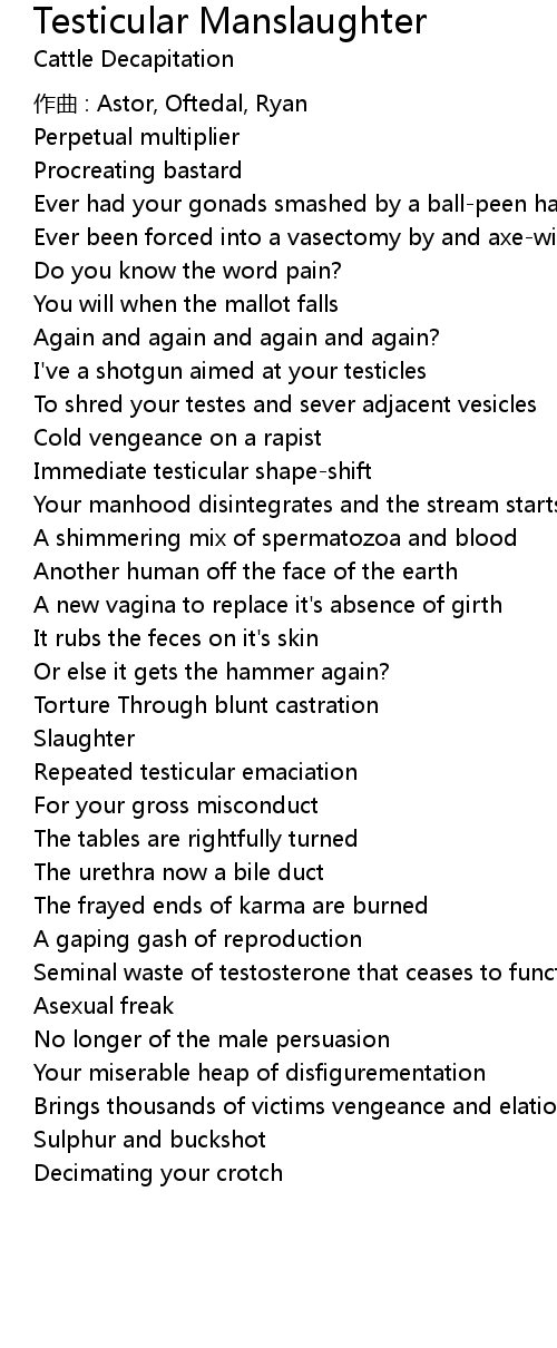 | To shred your testes and sever adjacent vesicles | |