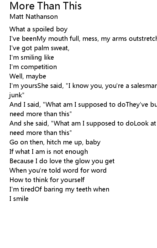 And she said, "What am I supposed to doLook at what's been come of you and I need more than this" |