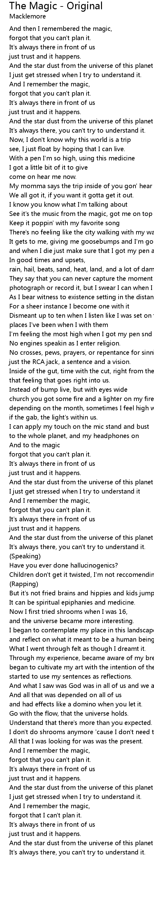 I don't do shrooms anymore 'cause I don't need to explore. |