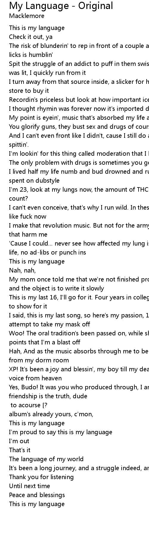 'Cause I could... never see how affected my lung is, you only get one shot at life, no ad-libs or punch ins |