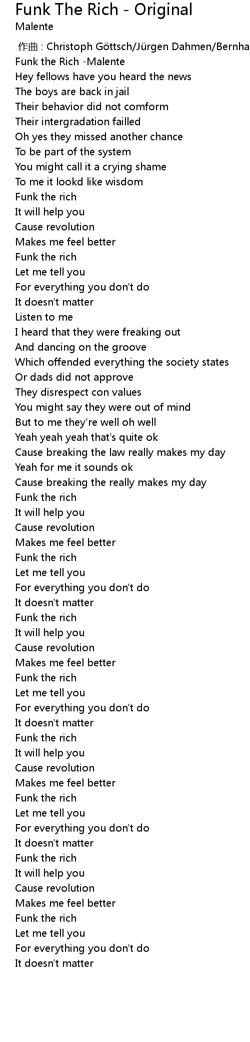 | [03:02.446] | Funk the rich |