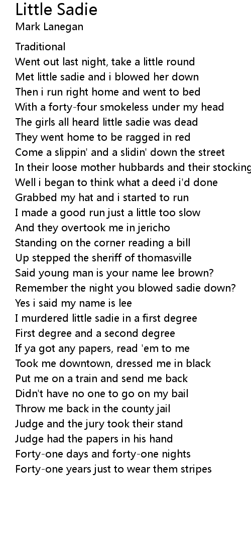I murdered little sadie in a first degree |