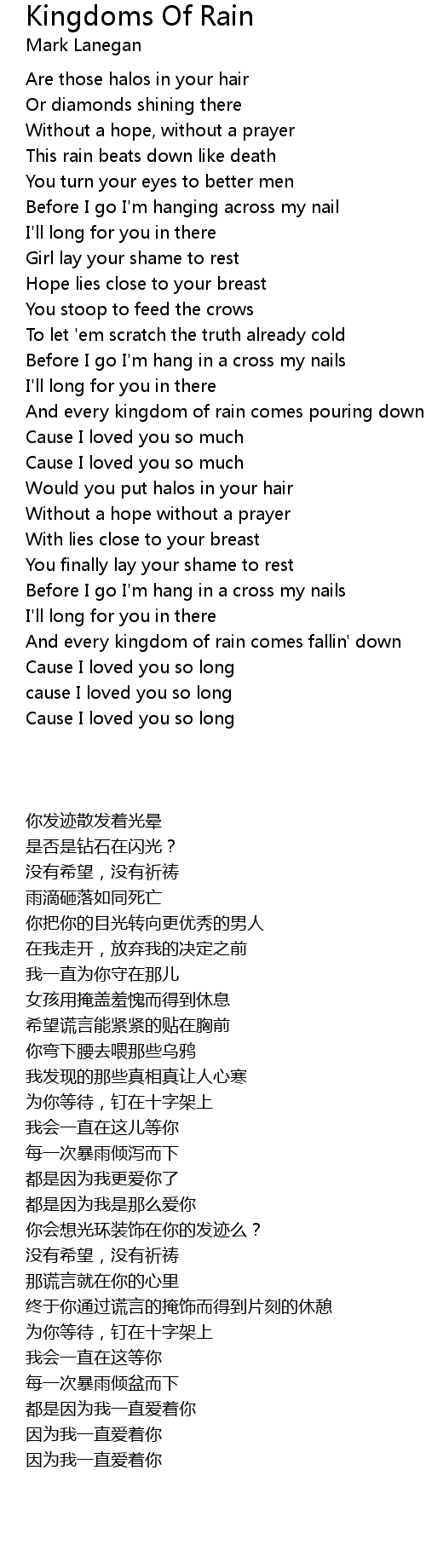 And every kingdom of rain comes fallin' down |