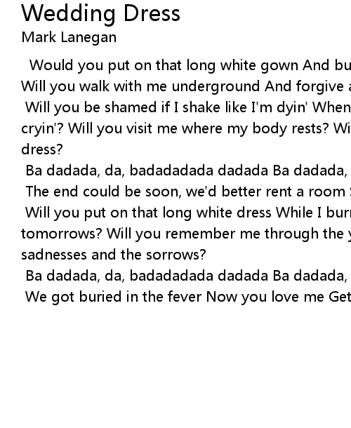 Will you be shamed if I shake like I'm dyin' When I fall to my knees and I'm cryin'? Will you visit me where my body rests? Will you put on that long white dress? |